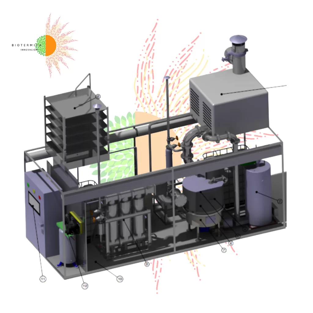El tiempo de proceso es muy rápido, tan solo de 1,5 horas por ciclo. Para su funcionamiento, solo requiere una conexión eléctrica y una chimenea similar a la de un equipo de calefacción de biomasa. Dado que los residuos tratados son orgánicos, las emisiones generadas son biogénicas, lo que significa que no contribuyen al efecto invernadero.